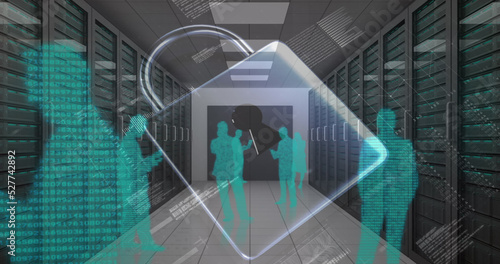 © vectorfusionart, Obraz premium Image of data processing and padlock icon over server room