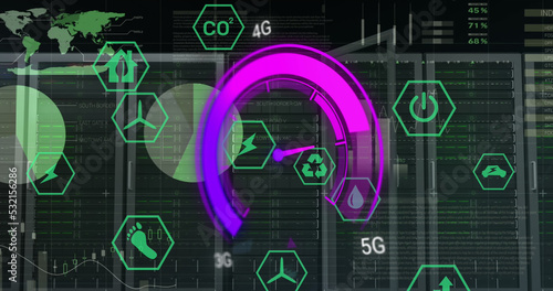 © vectorfusionart, Obraz premium Image of data processing and server room over speedometer