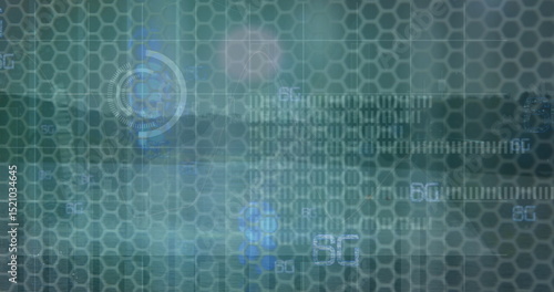 © vectorfusionart, Obraz premium Image of data processing and shapes on black background