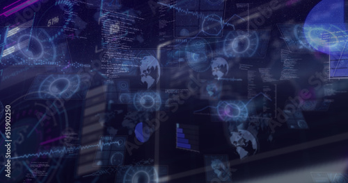 © vectorfusionart, Fototapeta premium Image of data processing over black background