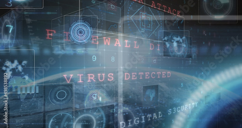 © vectorfusionart, Fototapeta premium Image of data processing over globe