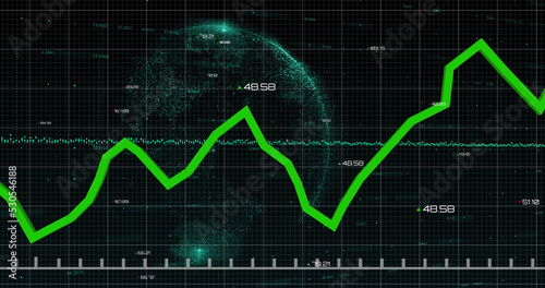 © vectorfusionart, Naklejka premium Image of data processing over globe