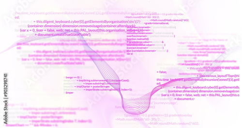 © vectorfusionart, Naklejka premium Image of data processing over liquid flowing