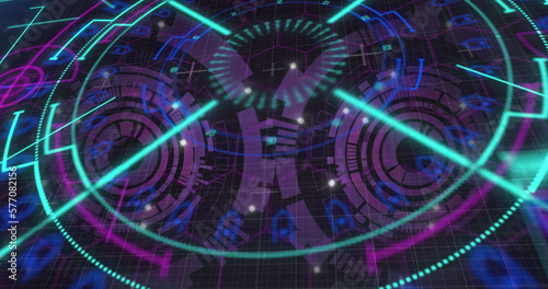 © vectorfusionart, Obraz premium Image of data processing over scopes scanning