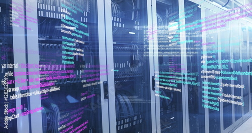 © vectorfusionart, Fototapeta premium Image of data processing over server room