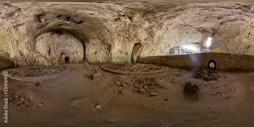 Obraz premium 360 image of Devetashka cave with holes on the ceiling
