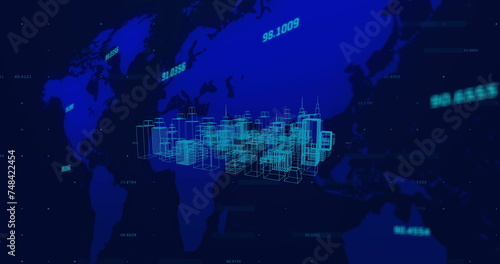 © vectorfusionart, Naklejka premium Image of digital city over world map