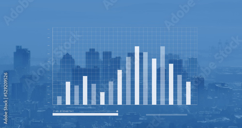 © vectorfusionart, Obraz premium Image of digital data processing over cityscape