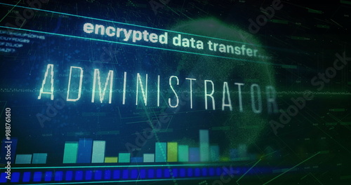 © vectorfusionart, Fototapeta premium Image of digital data processing over globe and networks of connections