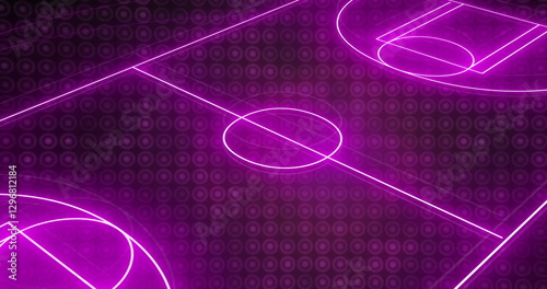 © vectorfusionart, Naklejka premium Image of digital data processing over neon basketball court