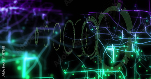 © vectorfusionart, Fototapeta premium Image of digital data processing over scope scanning on black background