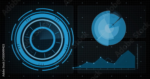 © vectorfusionart, Obraz premium Image of digital data processing over scope scanning on black background