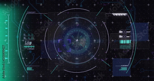 © vectorfusionart, Obraz premium Image of digital data processing over scope scanning on black background