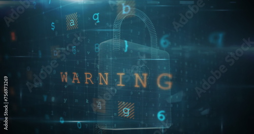 © vectorfusionart, Obraz premium Image of digital interface with security padlock over dark background