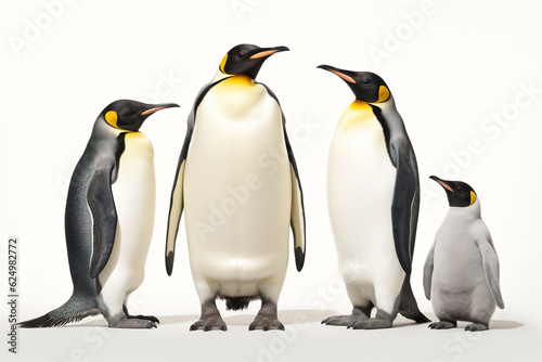 © yod67, Fototapeta premium Image of family group of Emperor Penguins on white background. Wildlife Animals. Illustration, Generative AI.