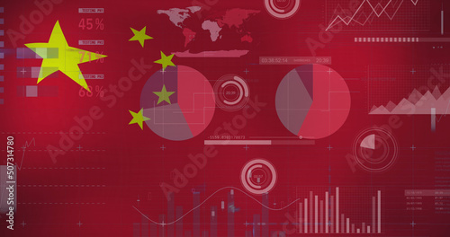 © vectorfusionart, Obraz premium Image of financial data and graphs over flag of china