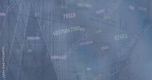 © vectorfusionart, Obraz premium Image of financial data processing over city