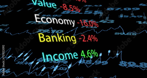 © vectorfusionart, Fototapeta premium Image of financial data processing with numbers over black background