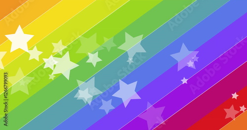 Fototapeta premium Image of floating stars over pride text and rainbow