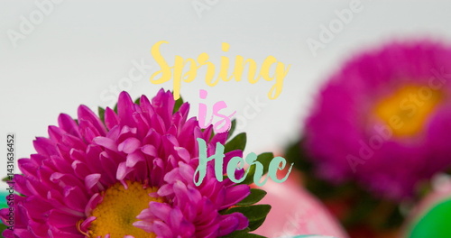 © vectorfusionart, Fototapeta premium Image of flowers at easter and spring is here text
