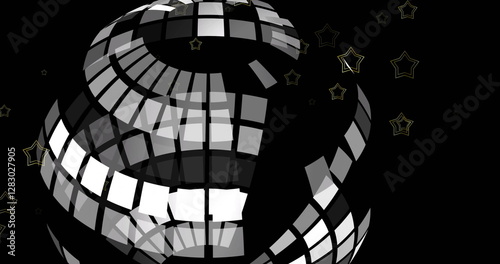 © vectorfusionart, Fototapeta premium Image of globe and stars moving over black background
