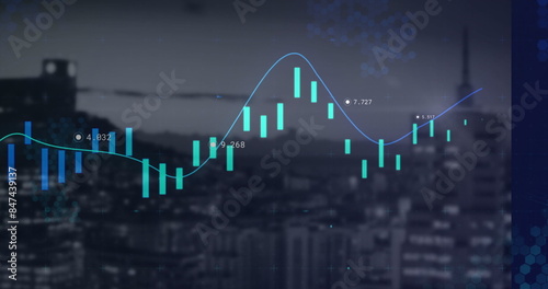 © vectorfusionart, Obraz premium Image of graph with fluctuating data points displayed on digital screen