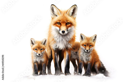 © yod67, Obraz premium Image of group of foxs on a white background. Wildlife Animals. Illustration, Generative AI.