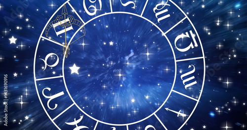 © vectorfusionart, Fototapeta premium Image of horoscope symbols over stars and space