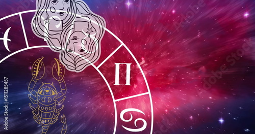 © vectorfusionart, Obraz premium Image of horoscope symbols over stars on blue background