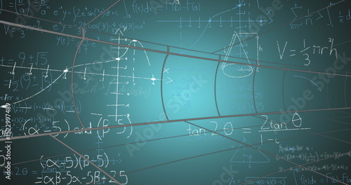 Fototapeta premium Image of math formulas on green background