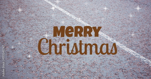 © vectorfusionart, Fototapeta premium Image of merry christmas text over stars falling