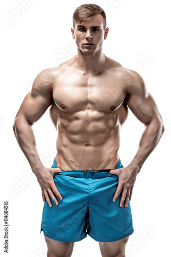 © nazarovsergey, Fototapeta premium Image of muscle man posing in studio