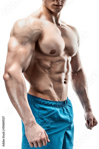 © nazarovsergey, Fototapeta premium Image of muscle man posing in studio