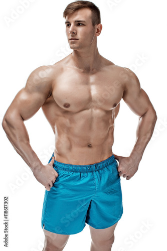© nazarovsergey, Fototapeta premium Image of muscle man posing in studio