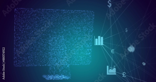 © vectorfusionart, Naklejka premium Image of network of connections over computer