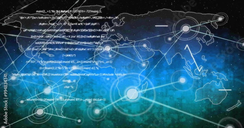 © vectorfusionart, Naklejka premium Image of network of connections with spots over world map