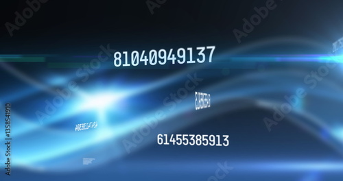 © vectorfusionart, Obraz premium Image of numbers changing and data processing over glowing blue lines