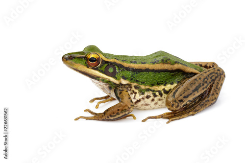 © yod67, Obraz premium Image of paddy field green frog or Green Paddy Frog (Rana erythraea) on a white background. Amphibian. Animal.