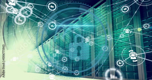 © vectorfusionart, Obraz premium Image of padlock icon and digital data processing over computer servers