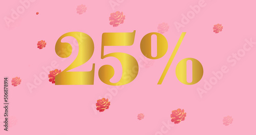 © vectorfusionart, Naklejka premium Image of 25 percentage text over flowers on pink background