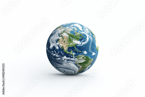 © Mary, Fototapeta premium Image of Planet Earth on White Background – Isolated Globe for Educational, Environmental, and Scientific Use