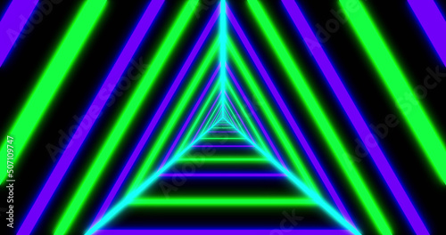 © vectorfusionart, Obraz premium Image of purple and green neon pattern moving in hypnotic motion on seamless loop