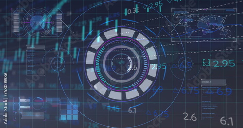 © vectorfusionart, Obraz premium Image of rotating safe over data processing on black background