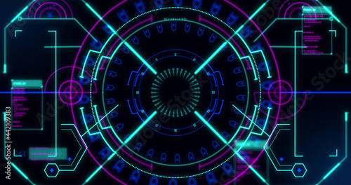 © vectorfusionart, Obraz premium Image of scope scanning and data processing on black background