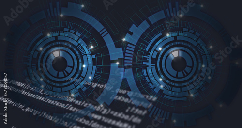 © vectorfusionart, Obraz premium Image of scope scanning and data processing on black background