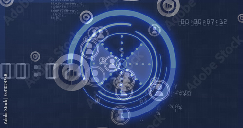 © vectorfusionart, Obraz premium Image of scope scanning and icons over data processing