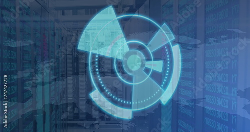 © vectorfusionart, Obraz premium Image of scope scanning with data processing over server room