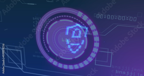 Obraz premium Image of scope scanning with padlock icon over data processing
