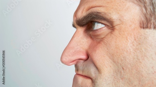 Fototapeta premium "Image of side profile of a man with visible nose hairs."