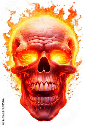 © LeoArtes, Fototapeta premium Image of Skull with Fire, for Stickers, T-shirt Print, Cap, Mug, Slippers, Mousepad, with Transparent Background PNG
